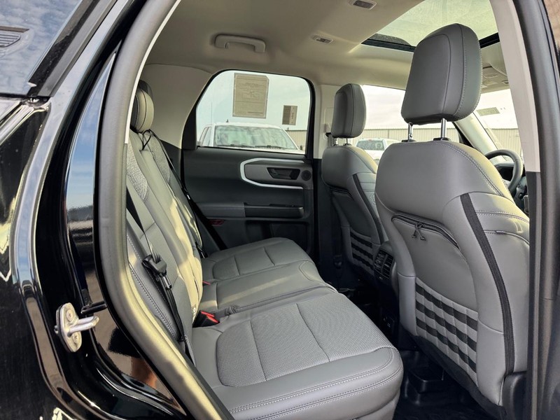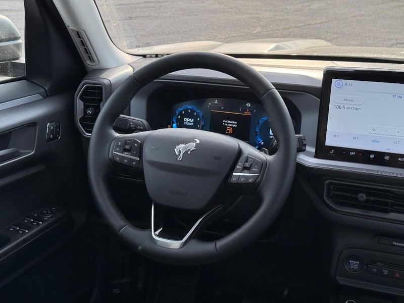 Good to go, our New 2025 Ford Bronco Sport Badlands 4X4 can push right past the pavement in Shadow Black with the Tech Pack! Powered by a TurboCharged 2.0 Liter EcoBoost 4 Cylinder delivering 250hp to an 8 Speed Automatic transmission with a seven-mode terrain system. A HOSS 2.0 off-road suspension, twin-clutch 4X4, and Trail Control advance capability further, and this Four Wheel Drive SUV scores nearly 26mpg on the highway. Our Bronco Sport breaks free from boring design with LED lighting, fog lamps, steel skid plates, a steel-plated front bumper, 17-inch matte black alloy wheels, recovery hooks, a sunroof, and a black roof with roof rails.