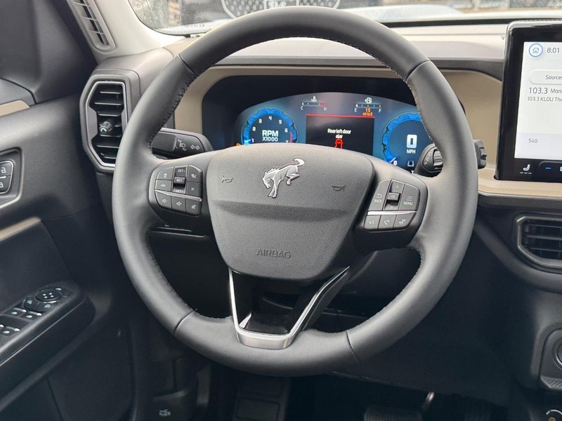Our New 2025 Ford Bronco Sport Big Bend 4X4 with the Convenience Package in Azure Gray can go straight from town to trail without missing a beat! Powered by a TurboCharged 1.5 Liter EcoBoost 3 Cylinder delivering 181hp to an 8 Speed Automatic transmission that's eager for action. This Four Wheel Drive SUV also features five different performance modes for taking on tough terrain, and it scores nearly 28mpg on the highway. Undeniably bold, our Bronco Sport loves getting dirty and cleans up well to show off LED lighting, a distinctive white-letter grille, 17-inch Carbon Gray High Gloss alloy wheels, roof rails, and a multifunction liftgate that makes life easier with a flip-up rear glass, built-in bottle opener, and dual flood lamps.