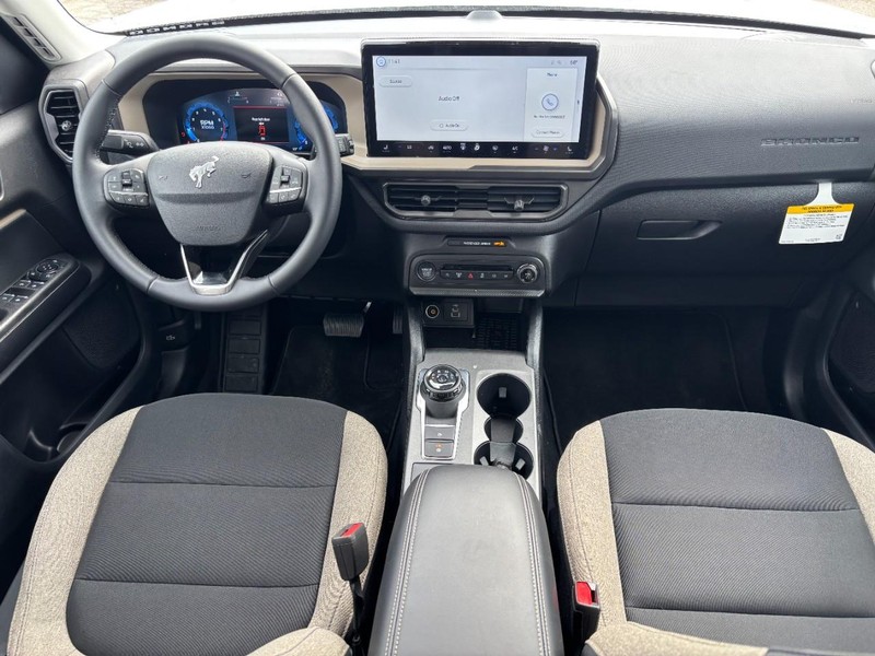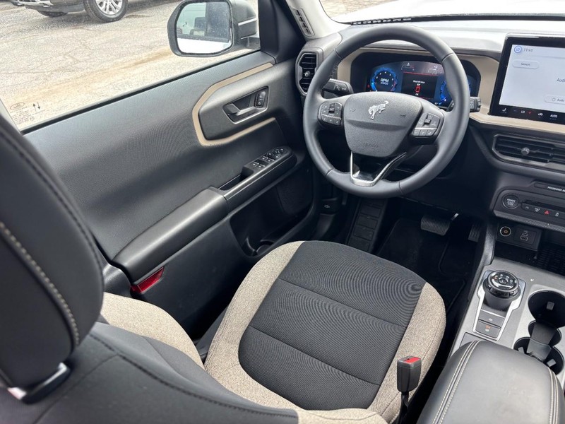 Our New 2025 Ford Bronco Sport Big Bend 4X4 with the Convenience Package in Oxford White can go straight from town to trail without missing a beat! Powered by a TurboCharged 1.5 Liter EcoBoost 3 Cylinder delivering 181hp to an 8 Speed Automatic transmission that's eager for action. This Four Wheel Drive SUV also features five different performance modes for taking on tough terrain, and it scores nearly 28mpg on the highway. Undeniably bold, our Bronco Sport loves getting dirty and cleans up well to show off LED lighting, a distinctive white-letter grille, 17-inch Carbon Gray high gloss alloy wheels, roof rails, and a multifunction liftgate that makes life easier with a flip-up rear glass, built-in bottle opener, and dual flood lamps.