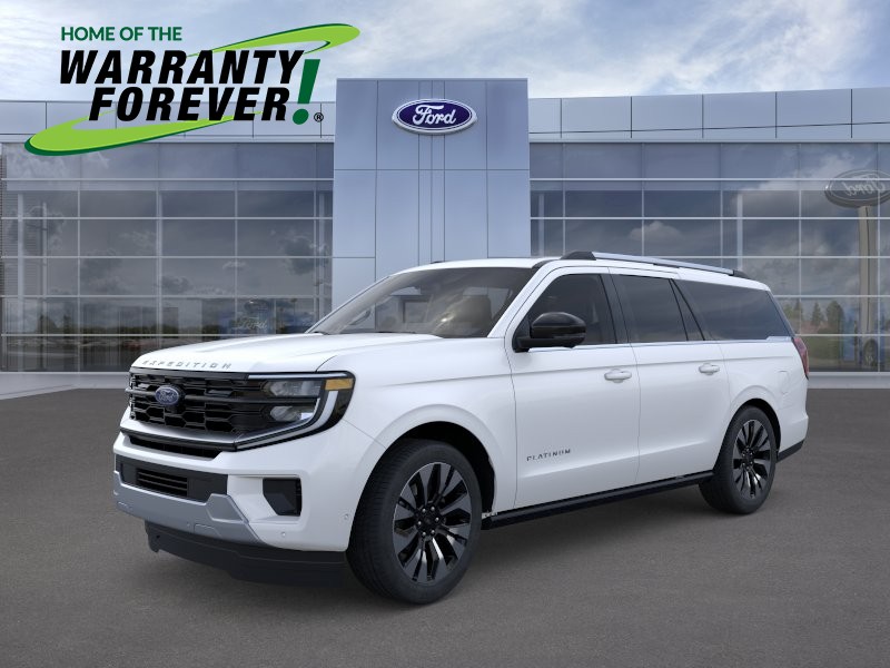 Elevate every journey with bold sophistication, our New 2025 Ford Expedition Platinum MAX 4WD in Star White Metallic Tri-Coat is a luxuriously capable full-size SUV engineered for premium family adventures, extended comfort, and top-tier technology. Motivated by a Twin-TurboCharged 3.5 Liter EcoBoost V6 offering 400hp to a 10 Speed SelectShift Automatic transmission. Continuously controlled damping brings a higher level of comfortable handling, and this extended-wheelbase Four Wheel Drive SUV scores nearly 23mpg on the highway. Our Expedition exterior boasts a panoramic sunroof, LED lighting, fog lamps, zone lighting, power running boards, a power liftgate, alloy wheels, roof rails, and a SecuriCode keypad.