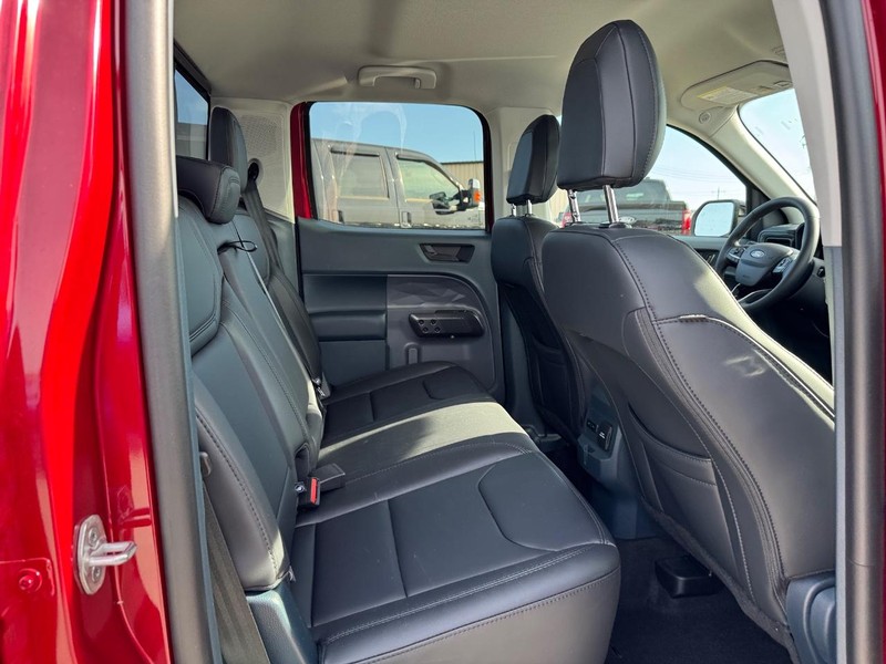 Our New 2025 Ford Maverick Lariat SuperCrew AWD with the Black Appearance Pack is a compact truck that's big on luxury in Hot Pepper Red Metallic! Motivated by a TurboCharged 2.0 Liter EcoBoost 4 Cylinder delivering 250hp to an 8 Speed Automatic transmission for confident power delivery. This All Wheel Drive truck is also easy to maneuver with agile handling, and it sees nearly 29mpg on the highway. Our Maverick blends true-truck capability with terrific style, showing off LED lighting, a gloss-black grille, a spray-in bedliner, a Flexbed cargo system, and our Appearance Pack for 19-inch black wheels, a painted roof, an exclusive hood decal, and additional black accents.