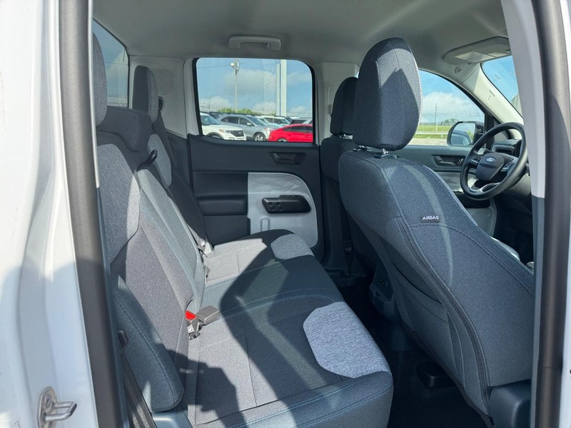 Our New 2025 Ford Maverick XLT SuperCrew AWD sets a high bar for having fun and getting things done in Oxford White! Motivated by a TurboCharged 2.0 Liter EcoBoost 4 Cylinder providing 250hp to an 8 Speed Automatic transmission for a confident driving experience at work or play. This Front Wheel Drive truck also returns nearly 30mpg on the highway with a rugged design. A distinctive gray grille bar leads our Maverick, complementing bold 17-inch alloy wheels, LED lighting, black mirror caps, a multi-position tailgate, and a versatile Flexbed system with passenger-side cubby storage.