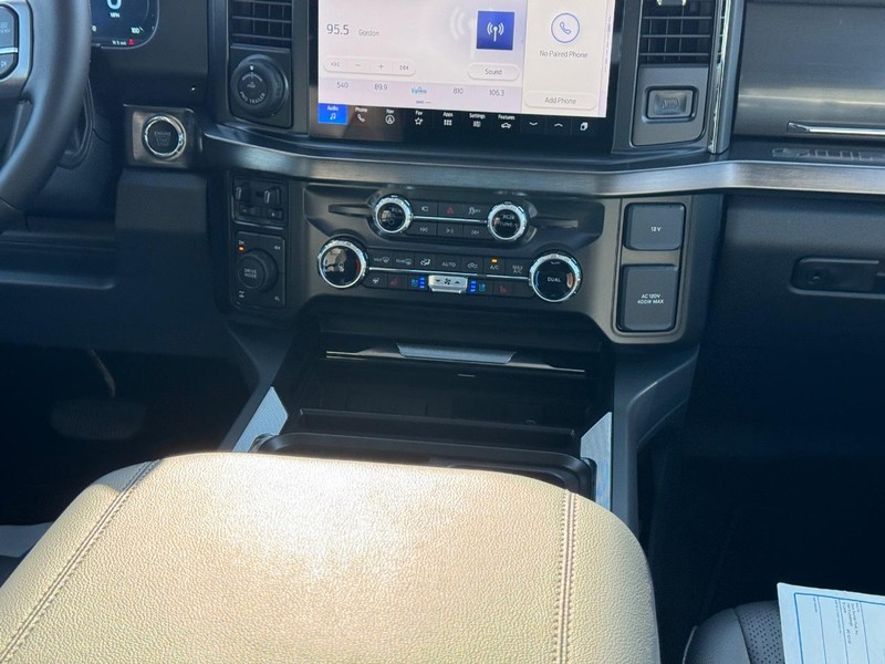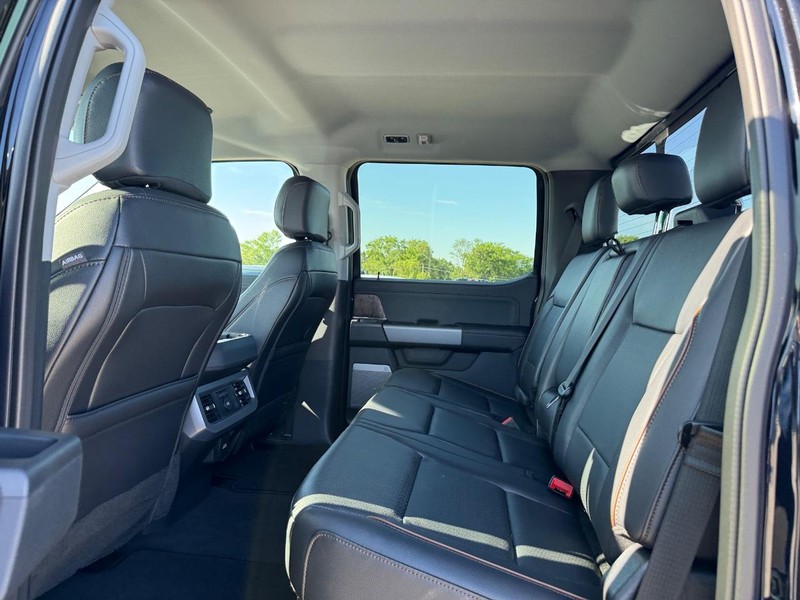 Our Lariat cabin levels up with the rewarding comfort of heated/ventilated leather power front seats, a heated leather power steering wheel, dual-zone automatic climate control, power-adjustable pedals, 120V/400W outlets, and a power sliding rear window. The interior resembles a mobile command post with a 12-inch touchscreen, a 12-inch driver display, connected navigation, wireless charging, WiFi compatibility, Apple CarPlay/Android Auto, Bluetooth, voice recognition, and B&O audio.