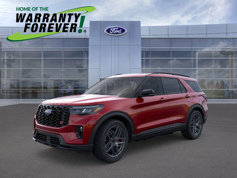 Bold and athletic, our New 2026 Ford Explorer ST 4WD with the Sun & Sound Pack and Ford Connectivity Pack in Rapid Red Metallic blends dynamic design with all-weather capability. Powered by a Twin-TurboCharged 3.0 Liter EcoBoost V6 serving up 400hp to a paddle-shifted 10 Speed Automatic transmission for premium performance. A sport-tuned suspension and Terrain Management help your family take on tricky trails and twisty roads, and this Four Wheel Drive SUV sees nearly 24mpg on the highway. Showing a confident style all its own, our Explorer boasts LED lighting, quad exhaust outlets, a power liftgate, 21-inch wheels, roof rails, and black accents. Be ready to turn heads in this bold SUV!