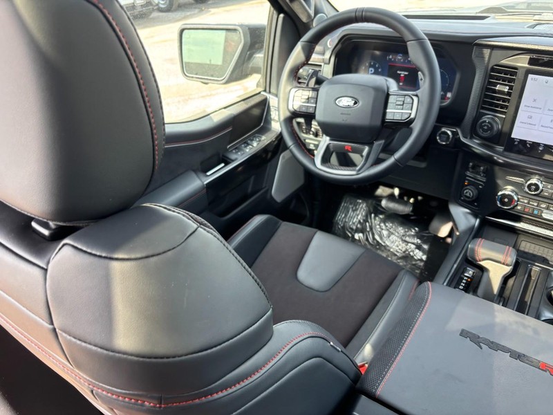 Our New 2026 Ford F-150 Raptor SuperCrew 4X4 is a bold driving machine built to go almost anywhere in Agate Black Metallic! Motivated by a SuperCharged 5.2 Liter V8 supplying 720hp to a 10 Speed Automatic transmission with dedicated off-road modes. They work with exclusive Raptor suspension upgrades, Trail Control, and an electronic locking differential to handle pavement, trails, and uncharted territory, and it returns nearly 15mpg on the highway. Revved-up Raptor design cues include LED lighting, a power sunroof, cast-aluminum running boards, hood-mounted heat extractors, fender flares, and aggressive 17-inch alloy wheels. A Pro Power generator is onboard as well!