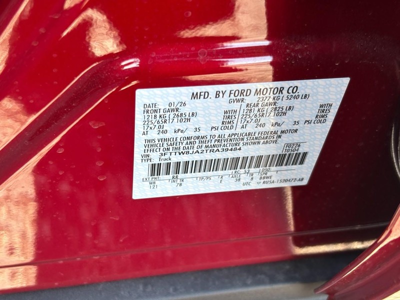 - VIN : 3FTTW8JA2TRA39484