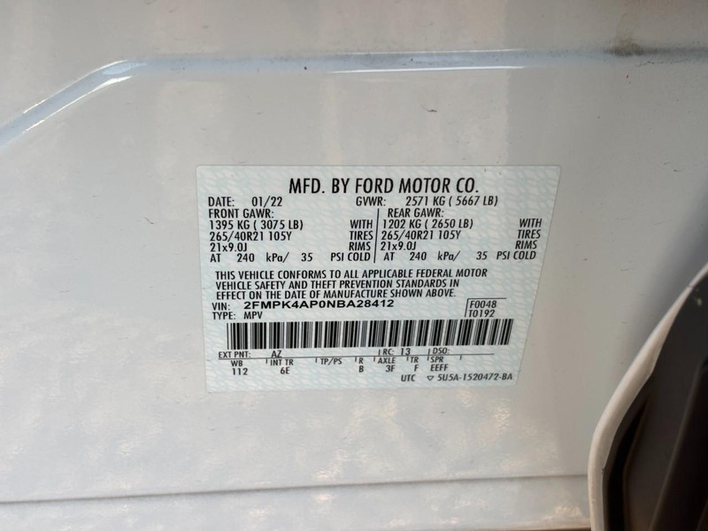 - VIN : 2FMPK4AP0NBA28412