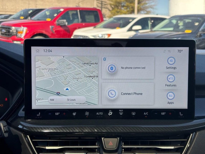 Our ST-Line cabin has its own exclusive style cues, including comfortable cloth heated front seats with eight-way power for the driver, red accent stitching, a heated flat-bottom sport steering wheel, dual-zone automatic climate control, keyless access/ignition, and multiple powerpoints. Staying connected comes easy with our Tech 1 Pack that adds connected navigation and a 13.2-inch touchscreen to an 8-inch driver display, wireless Android Auto/Apple CarPlay, WiFi compatibility, voice control, Bluetooth, and six-speaker audio.