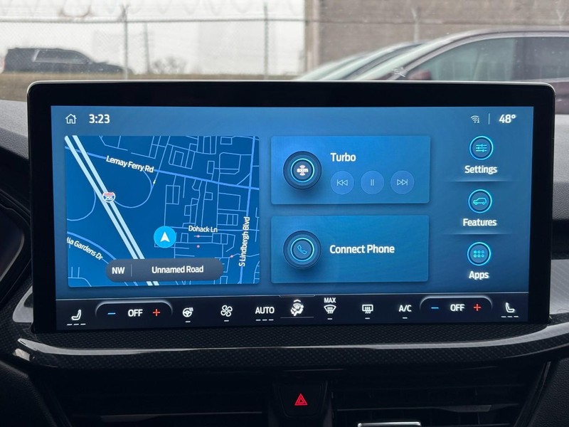 Our ST-Line cabin treats you to heated sport contour front seats with red stitching, eight-way power for the driver, a heated flat-bottom sport steering wheel, dual-zone automatic climate control, remote start, and keyless access/ignition. Digital advantages of this comfortable cockpit include Tech Pack #1, which adds a 13.2-inch touchscreen and connected navigation to an 8-inch driver display, WiFi compatibility, voice control, wireless smartphone connectivity, and six-speaker audio.