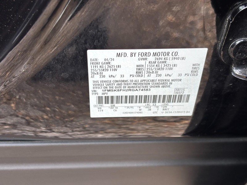 - VIN : 1FMSK8FH2RGA74583