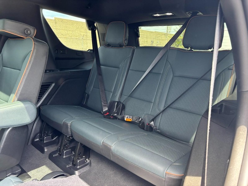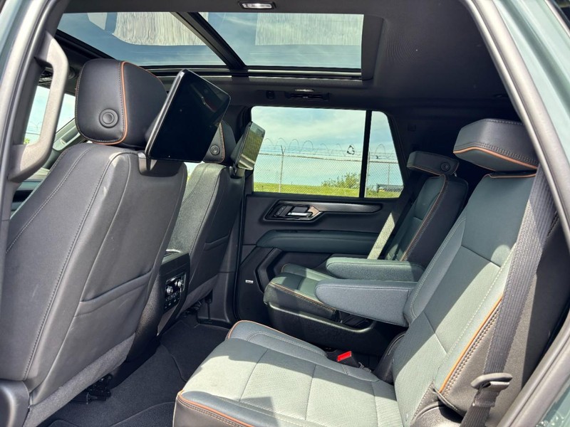 Our AT4 cabin can keep you comfortable even on tough trails, thanks to deluxe accommodations with heated/ventilated leather power front and heated second-row seats, a power-fold third row, a heated-wrapped power steering wheel, and tri-zone automatic climate control. Tech lovers can appreciate the 16.8-inch infotainment LCD and 11-inch driver display, which work with Google Built-in, WiFi compatibility, wireless smartphone connectivity, wireless charging, and a Bose sound system for rewarding digital convenience.
